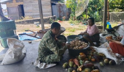 Babinsa Jalin Komsos Ke Desa Bantu Warga Kupas Coklat