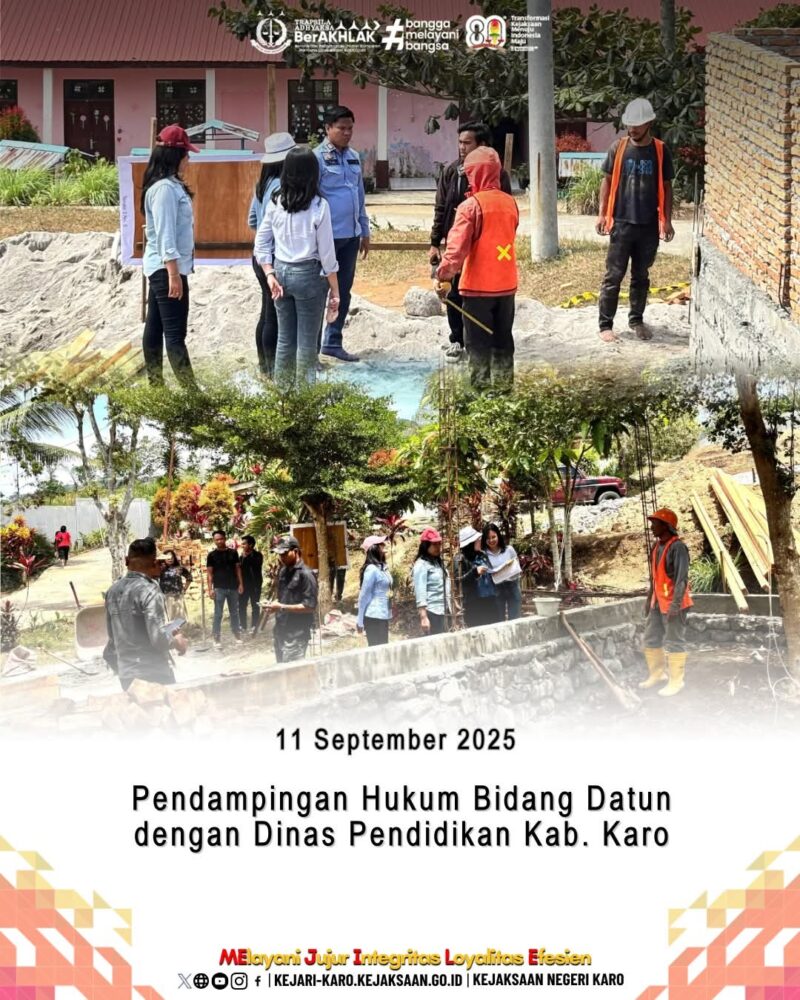 Tanah Karo – Kamis, 11 September 2025, AgaraNews . Com // Jaksa Pengacara Negara Dame Rasita Bangun, S.H., Lina Sinulingga, S.H., M.H., dan Yemima Siagian, S.H., melakukan pendampingan hukum dengan Dinas Pendidikan terkait pembangunan laboratorium sekolah. Proyek-proyek yang didampingi antara lain pembangunan laboratorium sekolah SD Negeri 040557 Juhar, pembangunan laboratorium sekolah SD Negeri 046577 Munte, dan pembangunan laboratorium SMP N 1 Juhar.