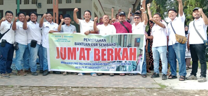 Aceh Singkil – agaranews.com ll PT Socfindo Kebun Lae Butar kembali menggelar kegiatan Jumat Berkah sebagai bentuk kepedulian perusahaan terhadap masyarakat sekitar. Program ini merupakan bagian dari Corporate Social Responsibility (CSR) yang rutin dilaksanakan untuk membantu warga di Desa sekitar kebun.