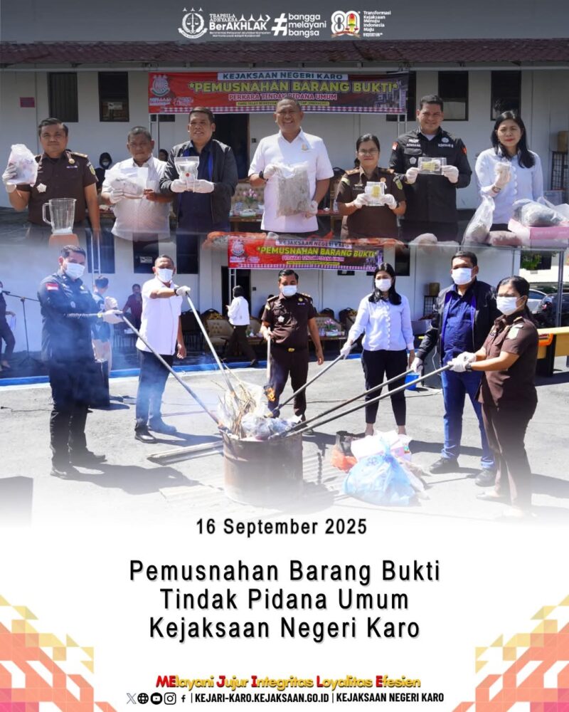 Pemusnahan barang bukti ini merupakan kegiatan rutin yang dilakukan oleh Kejaksaan Negeri Karo sebagai bagian dari kewenangan dalam penegakan hukum. Barang bukti yang telah memiliki kekuatan hukum tetap dimusnahkan untuk memastikan bahwa barang bukti tersebut tidak digunakan lagi untuk kegiatan yang melanggar hukum.
