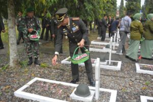 Banyumas, AgaraNews.com // Dalam rangka memperingati momen penting kebangsaan dan TNI, Korem 071/Wijayakusuma menggelar kegiatan ziarah sebagai wahana penanaman nilai-nilai kejuangan. Kegiatan ini dipimpin langsung oleh Komandan Korem 071 dan dilaksanakan di Taman Makam Pahlawan Tanjung Nirwana Purwokerto, Banyumas, pada Jumat (3/10/2025).Ziarah dihadiri oleh prajurit TNI Matra Darat, Laut, Udara dan Polri, PNS, Persit Kartika Chandra Kirana Koorcab Rem 071 PD IV/Diponegoro, Jalasenastri Lanal Cilacap, dan Pia Ardya Garini Lanud Jenderal Besar Sudirman Purbalingga. Acara diawali dengan penghormatan pasukan, mengheningkan cipta, peletakan karangan bunga, dan tabur bunga di pusara para pahlawan.Kegiatan ini bertujuan memberikan penghargaan dan penghormatan kepada para pahlawan bangsa yang telah berjuang tanpa mengenal lelah. “Ziarah menjadi sarana penting untuk menanamkan nilai-nilai kejuangan kepada para prajurit dan anggota TNI agar dapat meresapi makna perjuangan para pendahulu demi kemerdekaan dan kedaulatan negara,” terang Danrem 071/Wijayakusuma Kolonel Inf Lukman Hakim, M.Han.Danrem 071 menyampaikan bahwa ziarah ini juga untuk menumbuhkan semangat patriotisme dan rasa cinta tanah air, sekaligus mengingatkan bahwa tugas prajurit adalah bagian dari kelanjutan perjuangan bangsa. “Kegiatan ini memperkuat persatuan dan kesatuan bangsa dalam bingkai NKRI. Ziarah Korem 071 menjadi momen refleksi mendalam atas semangat kejuangan para pahlawan, sekaligus penanaman nilai luhur bagi generasi penerus bangsa dalam menjaga dan mengisi kemerdekaan dengan pengabdian dan karya nyata,” jelasnya.( Lia Hambali)