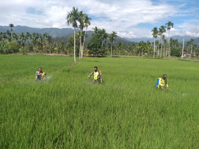 Dalam kesempatan tersebut Babinsa menyampaikan bahwa penyemprotan yang dilakukan ini bertujuan sebagai langkah menanggulangi serangan hama terhadap tanaman padi bisa berjalan dengan efektif, Babinsa turut serta turun langsung ke sawah membantu petani dalam penyemprotan tanaman guna membasmi hama yang merusak tanaman padi.