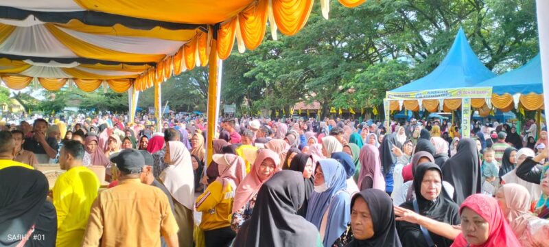 KUTACANE, agaranews.Com — Ribuan masyarakat memadati Lapangan Pemuda di Desa Kumbang Jaya, Kecamatan Babussalam, Aceh Tenggara, dalam rangka memperingati Hari Ulang Tahun (HUT) ke-61 Partai Golkar, Minggu (5/10/2025).