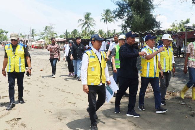 JEUMPA – Kepala Balai Wilayah Sungai (BWS) Sumatera I, Asyari, S.T., M.M., M.T., mendampingi Anggota Komisi V DPR RI, H. Ruslan M. Daud (HRD), dalam kunjungan kerja ke pesisir Kecamatan Jeumpa, Kabupaten Bireuen, Selasa (7/10/2025). Kunjungan tersebut bertujuan meninjau sejumlah titik pantai yang selama ini terdampak abrasi cukup parah.