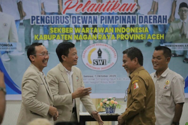 NAGAN RAYA | Brekingnews.agaranews.com – Prosesi pelantikan pengurus Dewan Pimpinan Daerah (DPD) Sekretariat Bersama Wartawan Indonesia (SWI) Kabupaten Nagan Raya berlangsung khidmat dan sukses di Aula Grand Nagan Hotel, Selasa (7/10/2025).
