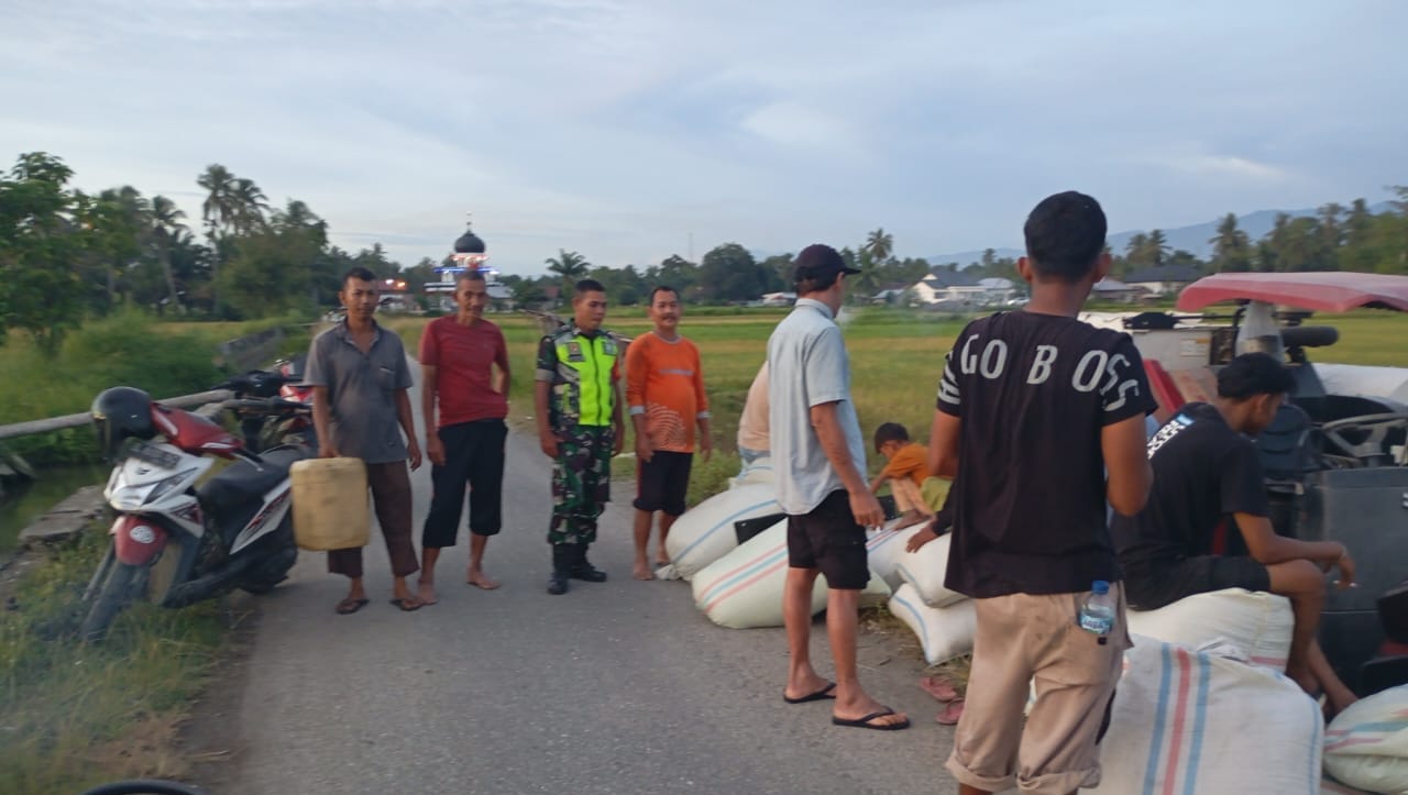 *Nagan Raya* Agaranews.com – Dalam rangka mendukung program ketahanan pangan nasional, Babinsa Koramil 02/Seunagan Serka Edi Marwansyah turut serta membantu warga binaan memanen padi Di desa Blang Murong Kecamatan Senagan Kabupaten Nagan Raya, pada Senin (13/10/2025).