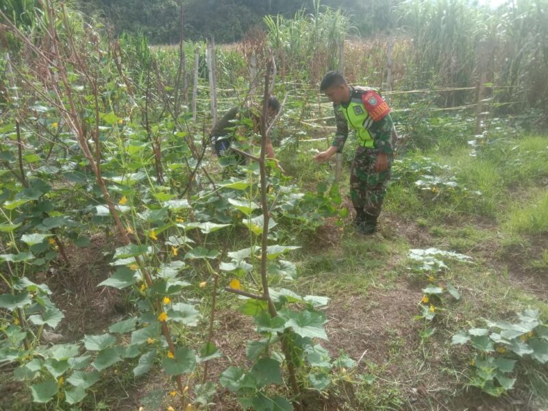 Koptu Sahrianto menyampaikan.Kegiatan pendampingan yang dilakukan berupa perawatan tanaman mentimun ini merupakan dan pada perawatan tanaman mentimun kali ini juga dilakukan pemupukan secara berkala dan penyemprotan agar tanaman terhindar dari hama atau penyakit.