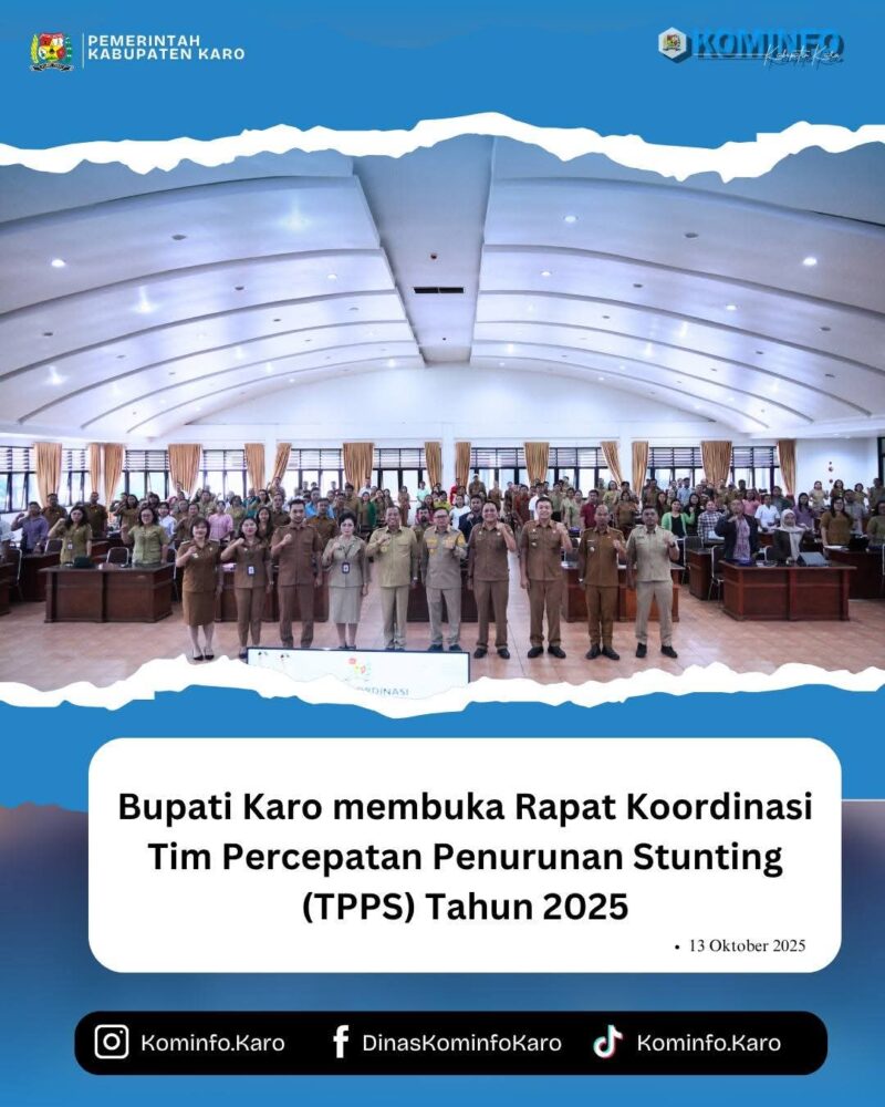 Dalam rangka percepatan penurunan stunting di Kabupaten Karo, Tim percepatan penurunan stunting Kabupaten Karo melakukan berbagai upaya dan program, salah satunya adalah rapat koordinasi percepatan stunting.