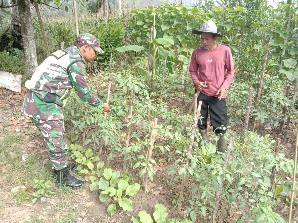 Kutacane Agaranews.com – Babinsa Posramil Ketambe Koptu Kairul Amri jajaran Kodim 0108/Agara mendampingi petani pemasangan ajir tanaman tomat milik bapak Sulaiman Di desa Jambur lak lak Kecamatan Ketambe, Kabupaten Aceh Tenggara. Selasa (14/10/2025).