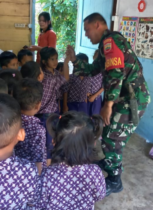 Dairi, AgaraNews . Com// Dalam upaya meningkatkan kesehatan anak usia dini, Babinsa Koramil 03/Parongil, Kodim 0206/Dairi, Serka Supriyadi melaksanakan kegiatan Binter (Pembinaan Teritorial) sekaligus pendampingan kepada tim tenaga kesehatan dari UPT Puskesmas Sopobutar dalam penyuluhan dan pemeriksaan kesehatan gigi dan mulut di PAUD Victory Kids, Desa Lae Markelang, Kecamatan Siempat Nempu Hilir, Kabupaten Dairi, Senin (13/10/2025).