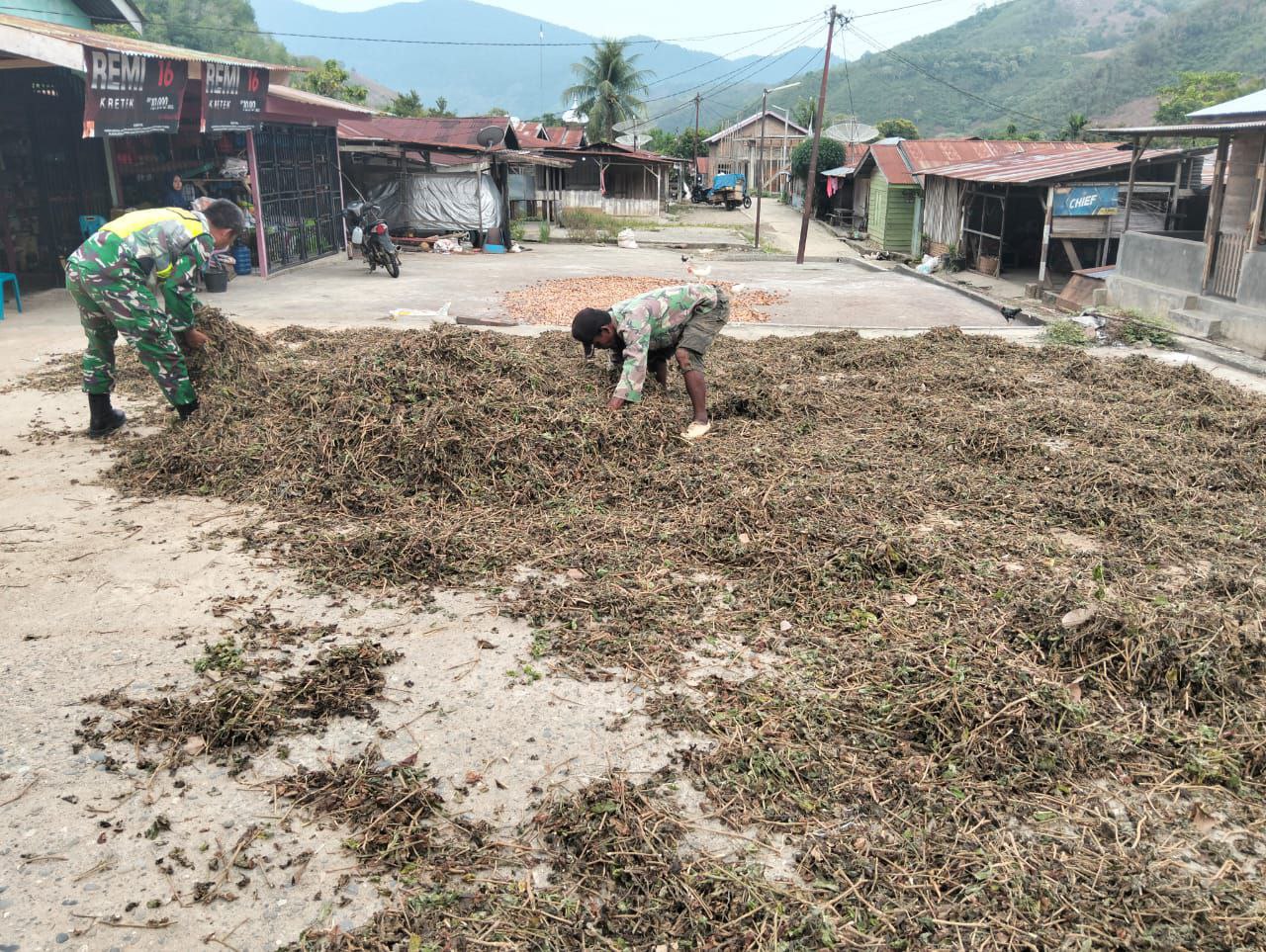 Kutacane Agaranews.com – Guna Meningkatkan pendapatan perekonomian masyarakat di wilayah binaan, Babinsa Kopka M Hutabarat membantu warga yang sedang menjemur hasil panen nilam milik bapak Anju warga desa Tanjung Sari Kecamatan Leuser, Kabupaten Aceh Tenggara,Selasa (14/10/2025).