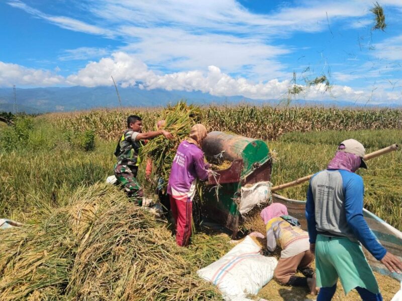 Wujud dukungan TNI khususnya prajurit kewilayahan yaitu Babinsa dalam mendukung ketahanan pangan (Hanpangan), dengan Semangat ikut serta terjun langsung ke sawah bantu para petani desa binaannya saat memanen padi, inilah yang dilakukan oleh Babinsa kepada para petani warga desa binaannya.