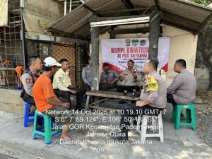 Jakarta Utara, AgaraNews.com // Sebagai upaya memperkuat kemitraan dengan masyarakat, Polsek Pademangan, Polres Metro Jakarta Utara, menggelar kegiatan Jumat Curhat di kawasan Sentral Ekonomi Ruko Permata Ancol, Jalan Budi Mulia, RW 016, Kelurahan Pademangan Barat, Kecamatan Pademangan, Selasa (14/10/2025).