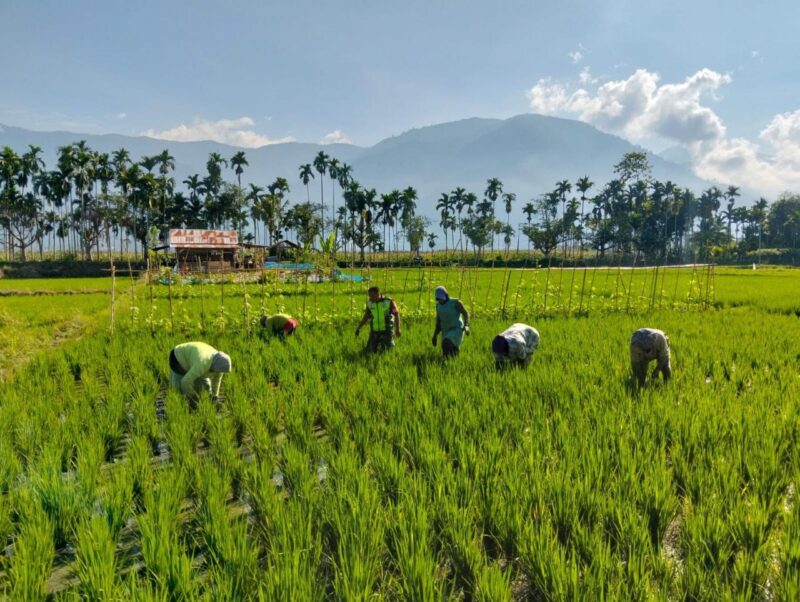 Kutacane Agaranews.com – Babinsa Koramil 0108-07/Semadam Kopda Bahagia jajaran Kodim 0108/Agara membantu masyarakat membersihkan gulma padi milik ibu Sarimah di desa Lawe kinga Lapter kecamatan Semadam Kabupaten Aceh Tenggara, Selasa (14/10/2025).