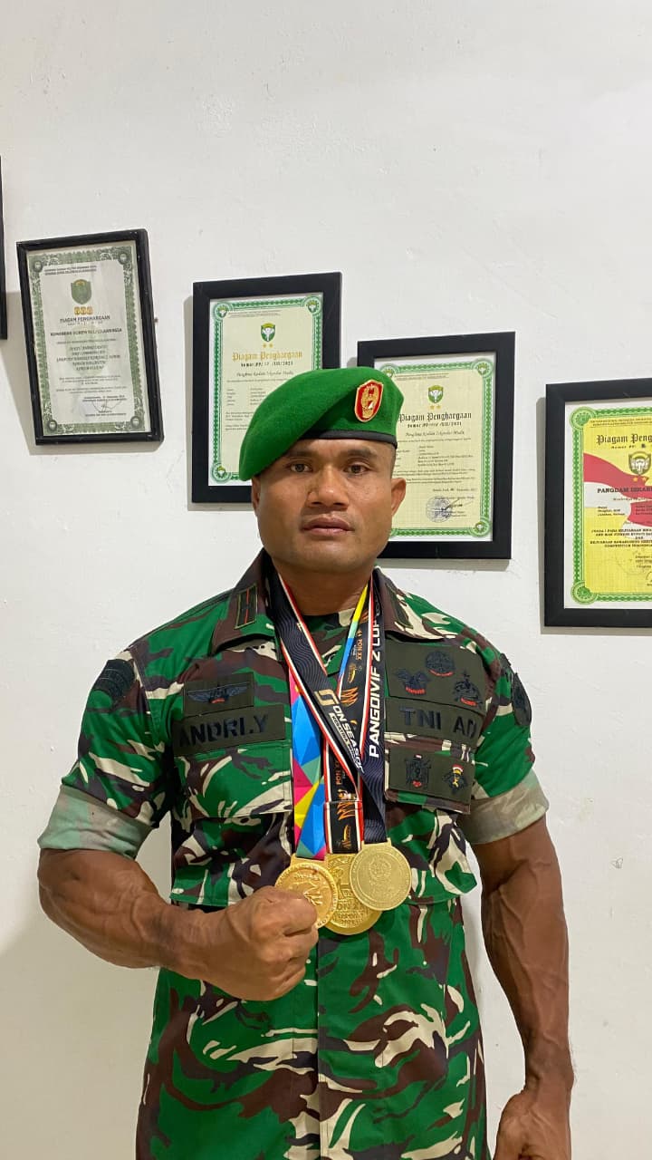 Atlet binaraga Indonesia prajurit TNI itu sukses dua gelar juara event nasional dan Internasional Asia di Tahun 2017 dan 2018.