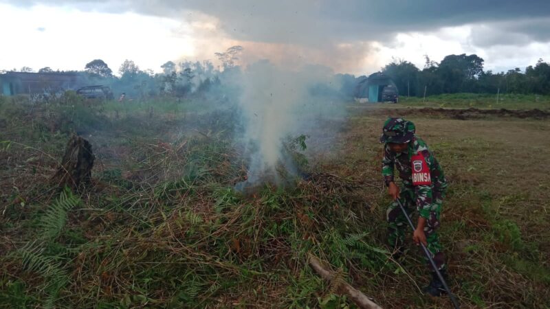Dairi, AgaraNews.com // Personel Koramil 02/Sidikalang, Kodim 0206/Dairi yang dipimpin oleh Danramil Kapten Inf T. Aritonang melaksanakan kegiatan pembersihan di lokasi bekas gudang amunisi (Gumuh) yang berlokasi di Lingkungan V, Kelurahan Sidiangkat, Kabupaten Dairi, Selasa (14/10/2025). Kegiatan ini dilakukan dalam rangka menyiapkan area kamp sementara untuk menampung pasukan Batalyon Infanteri (Yonif) YTP 908/Gajah Dompak.