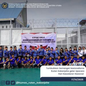 Kegiatan ini menunjukkan komitmen Rutan Kabanjahe dalam menanamkan nilai-nilai kebangsaan dan memperkuat semangat kerja demi tercapainya pelayanan pemasyarakatan yang lebih baik. Upacara kebangsaan seperti ini rutin dilaksanakan sebagai bagian dari program pembinaan untuk meningkatkan kesadaran nasional warga binaan.( Lia Hambali)