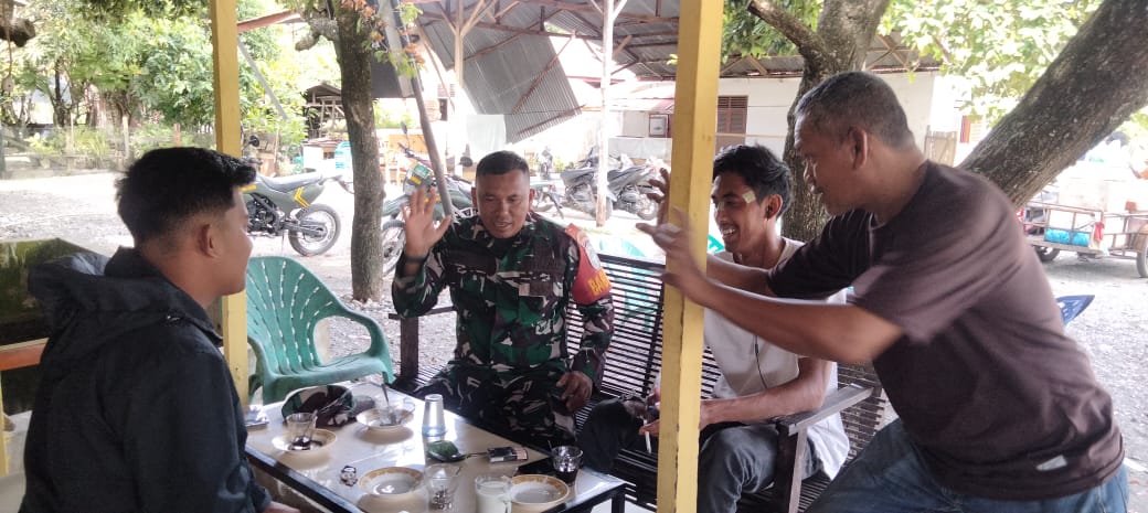 Babinsa menyampaikan dengan seluruh lapisan masyarakat untuk saling tukar segala bentuk informasi apabila ada permasalahan Kamtibmas yang timbul di masyarakat,Babinsa Juga menyampaikan Kegiatan Komsos seperti ini di lakukan sambil melaksanakan aktivitas rutin sehari-hari saat berada di desa Binaan,Adakalanya saat sarapan pagi atau pun saat ke kantor desa kita bisa saling berkomunikasi bertukar pikiran mengenai hal-hal yang terjadi pada warga Desa Binaan, pungkasnya.