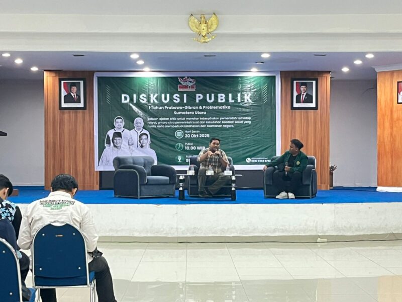 Medan, AgaraNews.com // Badan Eksekutif Mahasiswa Seluruh Indonesia (BEM SI) Wilayah Sumatera Utara (Sumut) menggelar Diskusi Publik : 1 Tahun Prabowo – Gibran dan Problematika di Sumut, Senin (20/10). Kegiatan ini menjadi langkah yang tepat untuk mengevaluasi jalannya pemerintahan satu tahun terakhir.