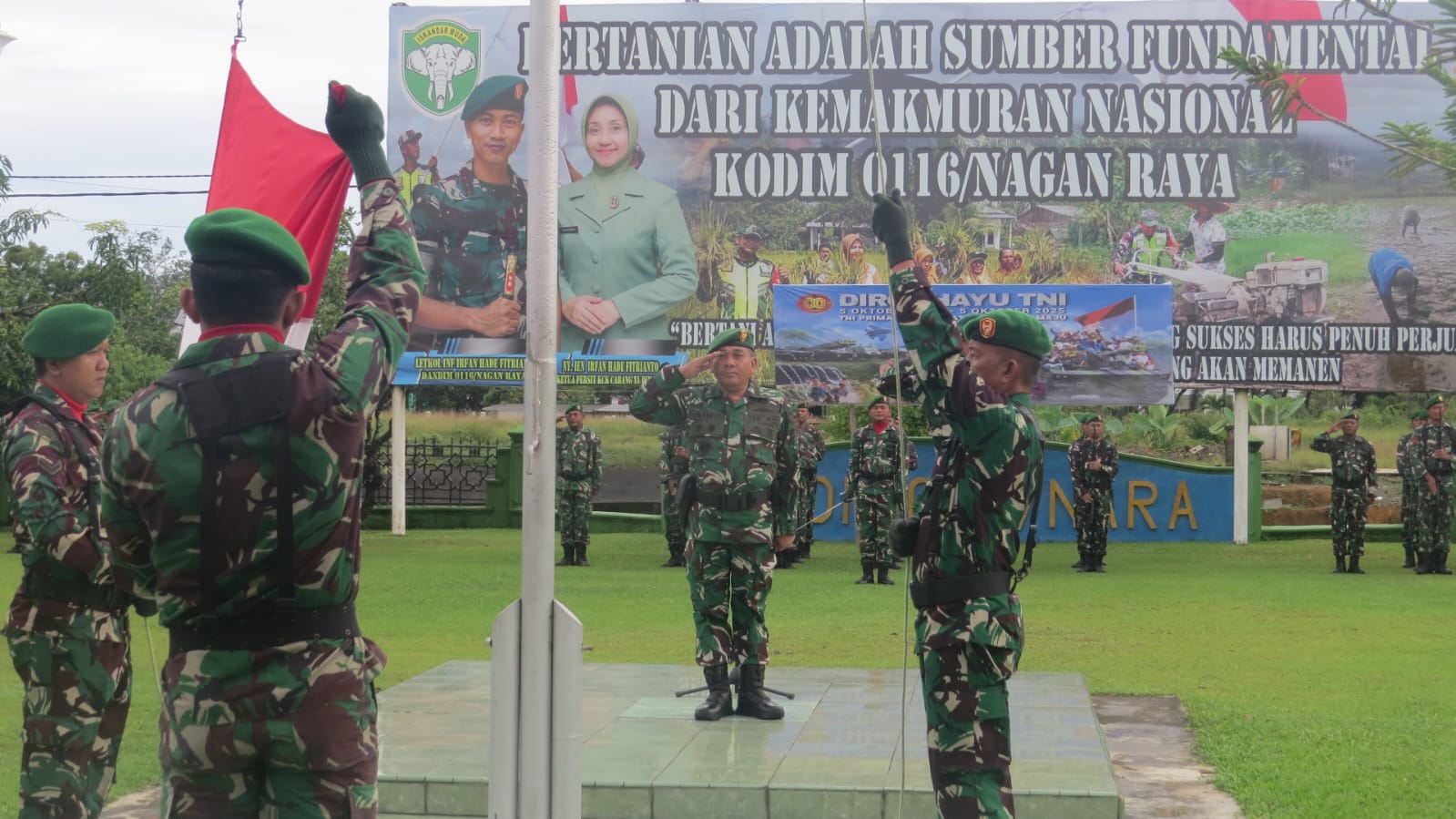 Kasdim 0116/Nagan Raya, Mayor Arm Ainu Rohkman bertindak sebagai Inspektur Upacara, sementara Komandan Upacara Danramil 04/Beutong, Letda Inf Junawan, dan Perwira Upacara Danramil 02/Seunagan Kapten Inf Irwansyah.