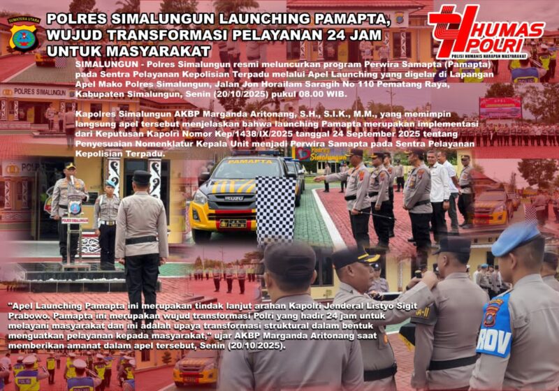 Simalungun, AgaraNews.com // Polres Simalungun resmi meluncurkan program Perwira Samapta (Pamapta) pada Sentra Pelayanan Kepolisian Terpadu melalui Apel Launching yang digelar di Lapangan Apel Mako Polres Simalungun, Jalan Jon Horailam Saragih No 110 Pematang Raya, Kabupaten Simalungun, Senin (20/10/2025) pukul 08.00 WIB.