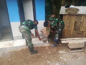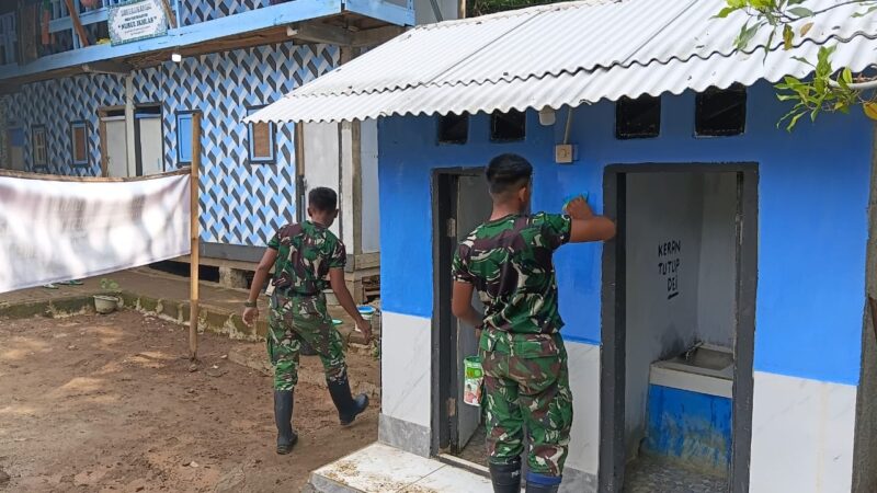 Di lokasi kegiatan, tampak anggota Satgas TMMD dengan penuh semangat mengerjakan proses finishing dan pengecatan dinding bangunan MCK. Meskipun cuaca tidak menentu akibat musim hujan, para prajurit tetap bekerja dengan tekun dan bergotong royong bersama masyarakat setempat demi percepatan penyelesaian pekerjaan.