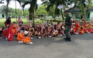 Keakraban anak-anak dan prajurit terasa begitu cair sejak awal pertemuan. Dua prajurit pilihan, Pelda Komarul Huda dan Pelda Suwoto, yang selama ini dikenal piawai mendampingi pendidikan nonformal, tampil dengan gaya komunikatif dan penuh kehangatan. Mereka mengawali kegiatan dengan pengenalan dunia Pramuka Pra Siaga melalui nyanyian, gerak dasar, serta permainan kekompakan. Suasana sontak berubah ceria, halaman Makodim pun menyerupai taman bermain edukatif yang hidup.