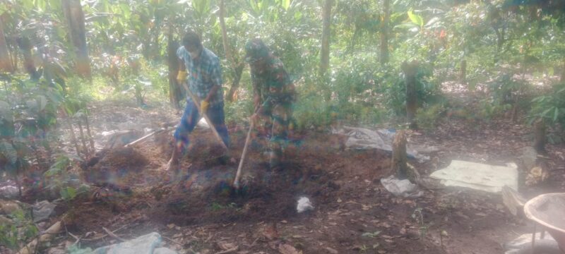 Dairi, AgaraNews .com // Dalam upaya mendukung ketahanan pangan dan pertanian berkelanjutan, Sertu Sparman Latif, Babinsa Koramil 03/Parongil, Kodim 0206/Dairi, turun langsung mendampingi petani Carter Napitupulu di Desa Polling Anak-Anak, Kecamatan Silima Pungga-pungga, Kabupaten Dairi, untuk membuat pupuk bokashi dari bahan-bahan alami dan limbah organik.