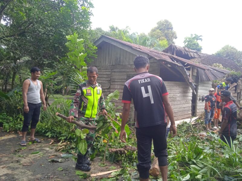 *Nagan Raya* Agaranews.com – Babinsa Koramil 03/Senagan Timur Kopda Said AR, bersama aparat desa dan warga setempat bergotong royong membersihkan pohon tumbang yang menghalangi jalan perbatasan antara Desa Blang Tengku Dan Desa Kila, Kecamatan Senagan Timur, Kabupaten Nagan Raya Rabu, (22/10/2025)