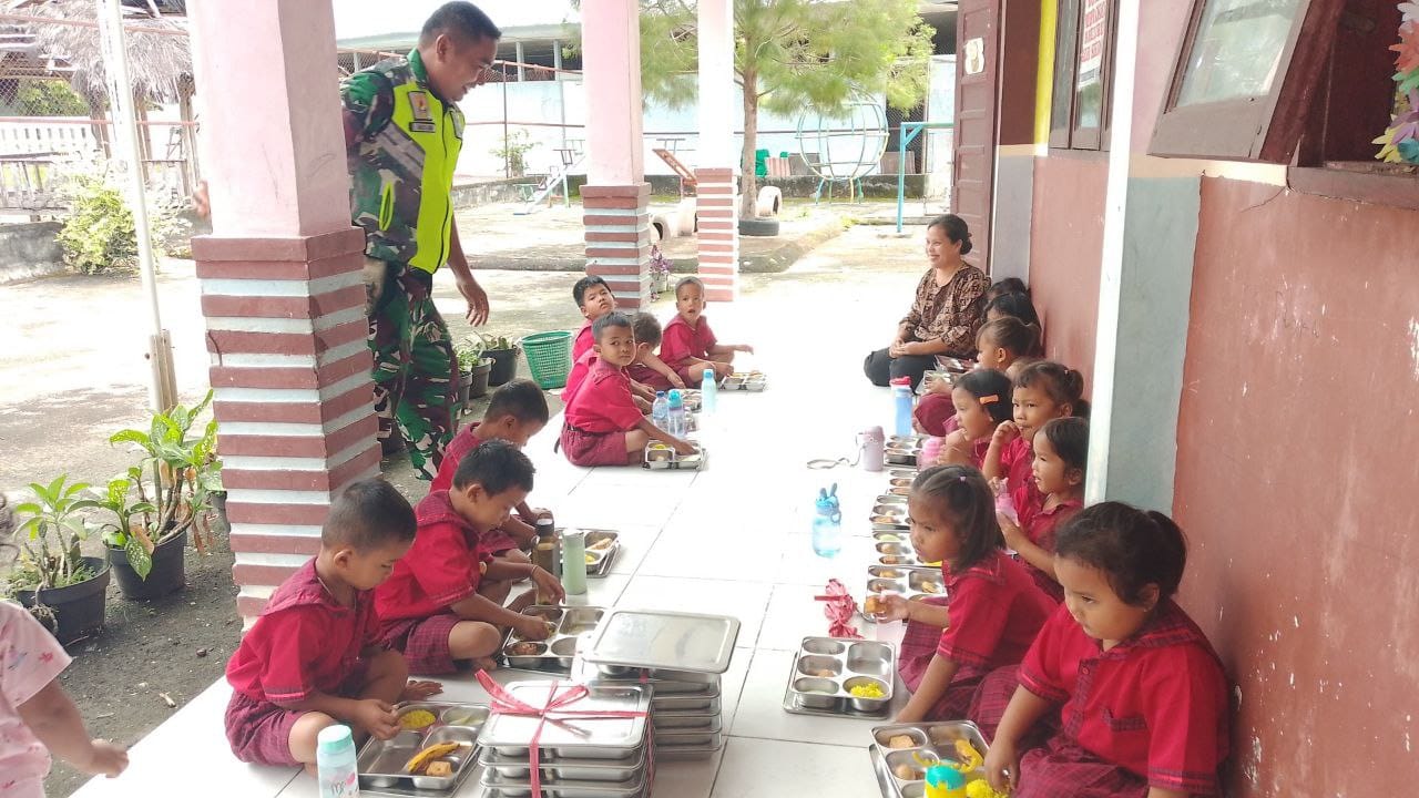 Kutacane Agaranews.com – Babinsa Posramil Lawe Bulan Sertu Muslim jajaran Kodim 0108/Agara ikut serta dalam pendampingan pendistribusian Makan Bergizi Gratis (MBG) yang diselenggarakan oleh Satuan Pelayanan Pemenuhan Gizi (SPPG) Yayasan Dayah Sirojululum Indonesia Program ini ditujukan bagi siswa-siswi TK.SD,SMP,SMA dan Puskesmas di wilayah kecamatan Lawe Bulan Kabupaten Aceh Tenggara, Rabu (22/10/2025).