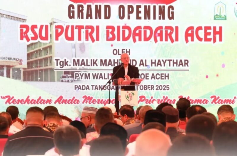 Brekingnews/ Banda Aceh | agaranews.com.online – Wali Nanggroe Aceh, Paduka Yang Mulia Tgk. Malik Mahmud Al-Haythar, meresmikan Rumah Sakit Umum (RSU) Putri Bidadari Aceh, sebuah fasilitas kesehatan swasta modern yang diharapkan menjadi pusat layanan medis unggulan di Tanah Rencong.