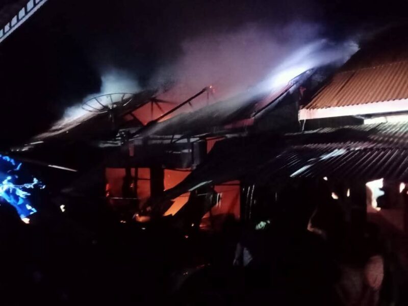 Brekingnews// KUTACANE// agaranews.com.online | Aceh Tenggara – Suasana malam di Desa Lawe Rutung, Kecamatan Lawe Bulan, mendadak mencekam saat kobaran api melahap Pasar Terpadu (Pajak Pagi), Sabtu (25/10/2025) sekitar pukul 23.00 WIB. Dalam waktu singkat, 10 unit kios semi permanen ludes terbakar.
