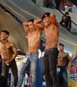 Dengan penampilan penuh percaya diri dan tubuh berotot proporsional, Purnomosidi sukses tampil memukau di atas panggung.