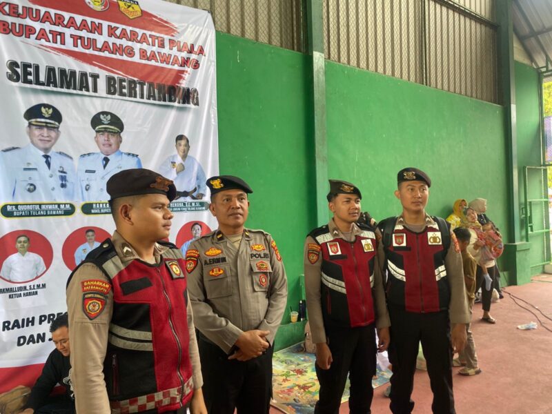 *Tulang Bawang* — Minggu (26/10/2025) Personel Satuan Samapta Polres Tulang Bawang melaksanakan pengamanan kegiatan Turnamen dan Festival Karate Piala Bupati Tulang Bawang yang berlangsung di Lapangan Tenis Indoor Menggala, Kecamatan Menggala, Kabupaten Tulang Bawang.