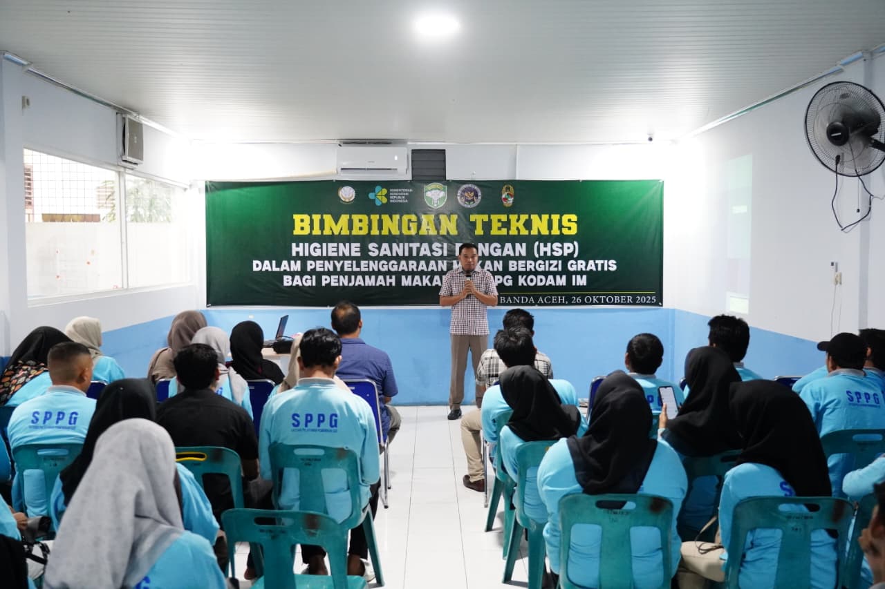 Banda Aceh  Agaranews.com — Dapur Satuan Pelayanan Pemenuhan Gizi (SPPG) Kodam Iskandar Muda (Kodam IM) menggelar Bimbingan Teknis (Bimtek) Higiene Sanitasi Pangan (HSP) dalam penyelenggaraan makanan bergizi gratis bagi para petugas SPPG Kodam IM, yang berlangsung di Dapur SPPG Kodam Iskandar Muda, Neusu Jaya, Banda Aceh. pada Minggu (26/10/2025)