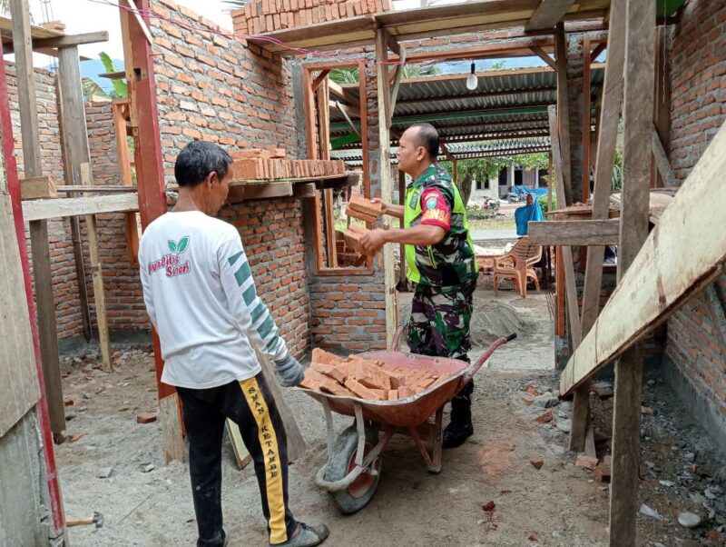Kutacane Agaranews.com – Babinsa Posramil Ketambe Serka Hamdan jajaran Kodim 0108/Agara membantu warga membangun rumah bapak Ralidun di desa Datuk Pinding Kecamatan Ketambe Kabupaten Aceh Tenggara, Senin (27/10/2025).