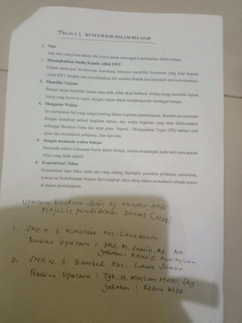 Hari itu, sekolah kedatangan tamu istimewa. Ketua Majelis Pendidikan Daerah (MPD) Kabupaten Aceh Tenggara, H. Ruslan Husni, M.Pd, bersama anggota komisi, melakukan kunjungan kerja ke dua sekolah, yakni SMPN 3 Bambel dan SMPN Lawe Sumur. Kunjungan ini merupakan bagian dari agenda pembinaan dan pengawasan rutin MPD terhadap lembaga pendidikan di tingkat menengah pertama.