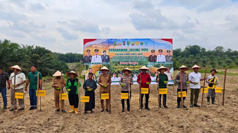 Inhu-Riau – Dalam rangka mendukung program pemerintah menuju Swasembada Pangan Nasional Tahun 2025, Polsek Lubuk Batu Jaya bersama Pemerintah Kabupaten Indragiri Hulu melaksanakan Program Nasional Penanaman Jagung Pipil Serentak Kuartal IV di lahan Tanah Kas Desa (TKD) Sungai Beras-Beras Hilir, Kecamatan Lubuk Batu Jaya, Kab. Inhu. Senin (27/10/2025).