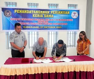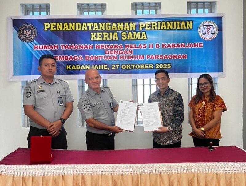 Tanah Karo, AgaraNews. Com // Rutan Kelas IIB Kabanjahe dan Lembaga Bantuan Hukum (LBH) Parsaoran baru-baru ini menandatangani perjanjian kerja sama untuk memberikan bantuan hukum gratis kepada Warga Binaan Pemasyarakatan (WBP) yang membutuhkan. Penandatanganan kesepakatan ini berlangsung di Aula Rutan Kabanjahe pada Senin, 27 Oktober 2025.