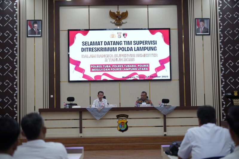 *Tulang Bawang* – Direktorat Reserse Kriminal Umum (Ditreskrimum) Polda Lampung melaksanakan kegiatan Supervisi Semester II Tahun 2025 di Aula Wira Arya Polres Tulang Bawang, pada Senin (27/10/2025) pukul 10.00 WIB.