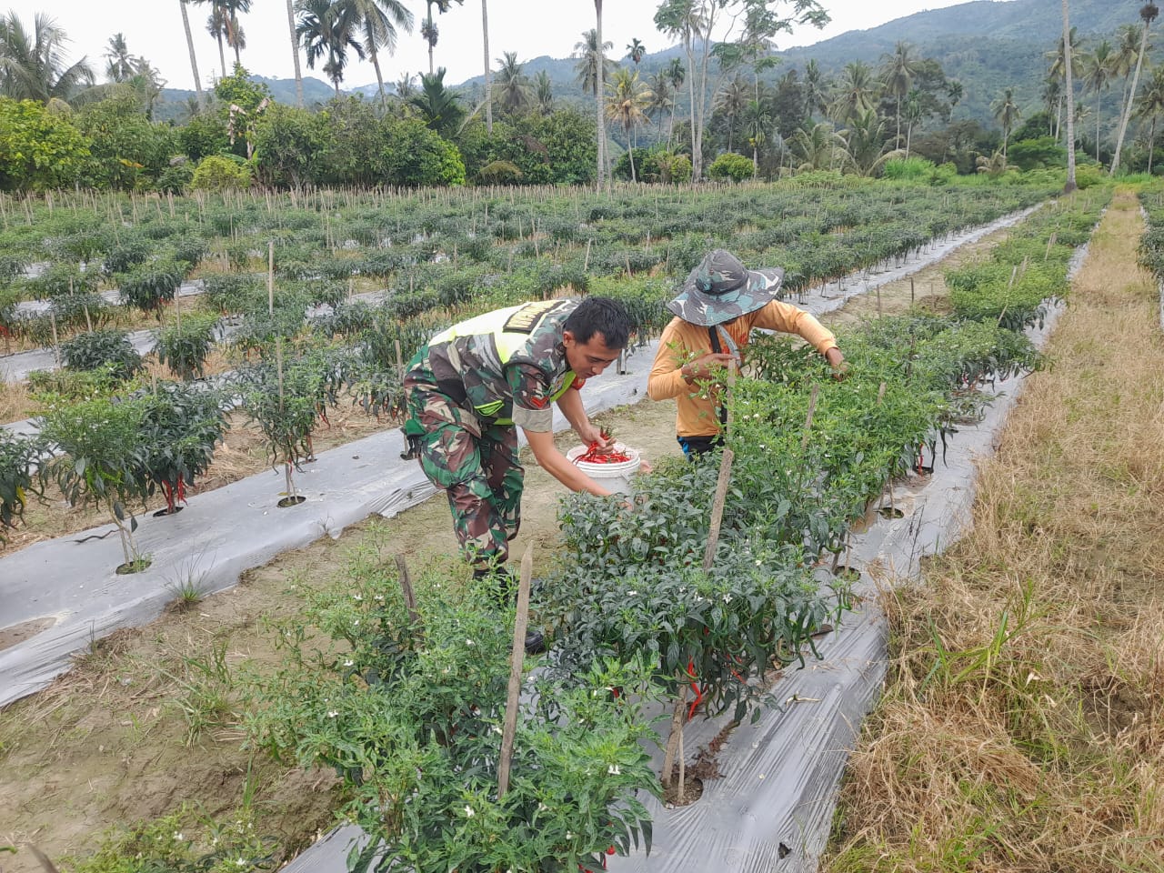 Sertu muslim mengatakan,pemanenan, pemantauan, perawatan dan pertumbuhan tanaman cabe tersebut bertujuan untuk memberikan motivasi kepada petani khususnya petani cabe di wilayah binaannya agar tetap semangat, Menurut dia Dengan perawatan yang optimal pohon cabe akan tumbuh subur dan berbuat lebat sesuai yang di harapkan..