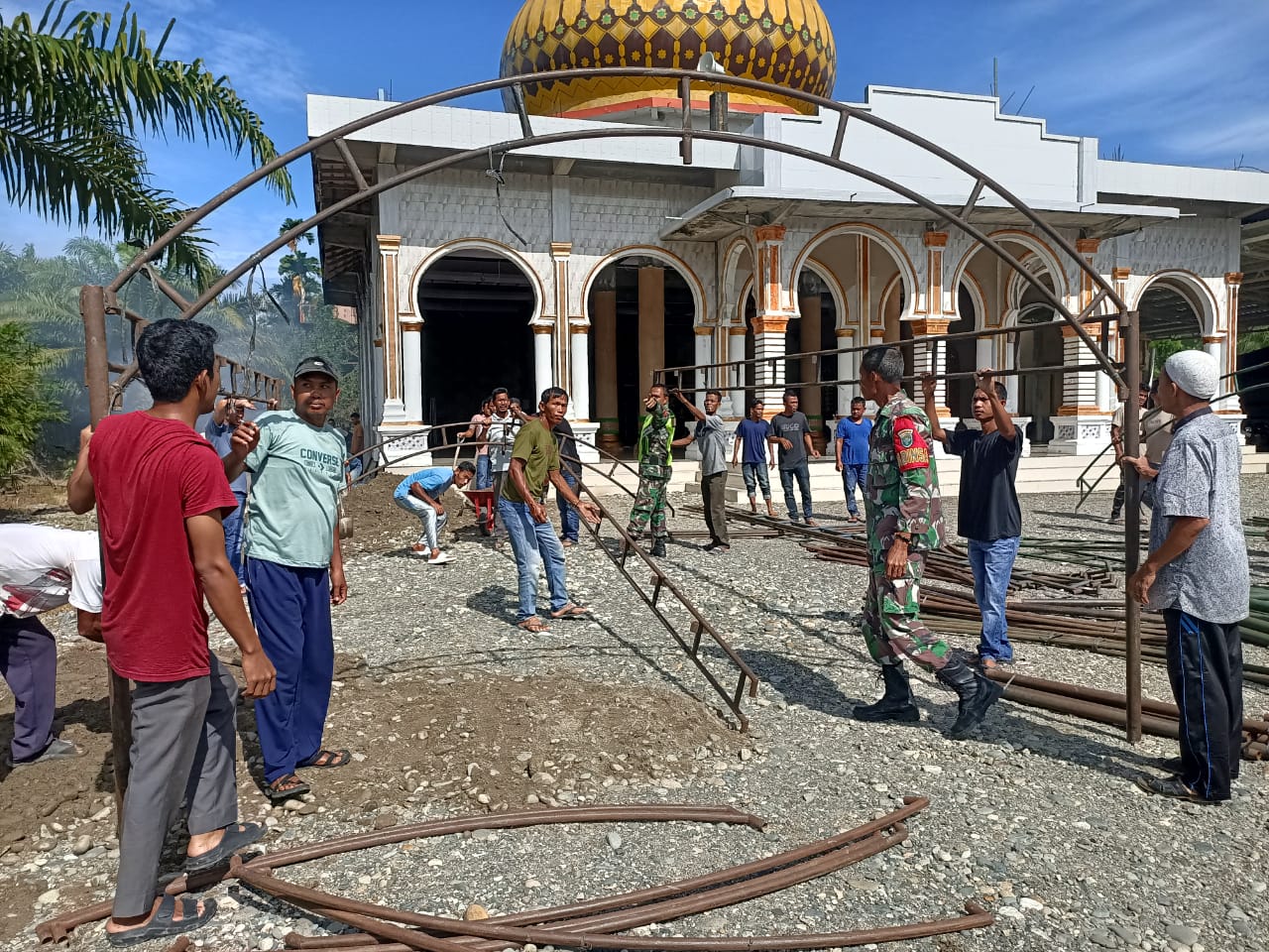 Nagan Raya – Dalam rangka menjaga kebersihan dan keindahan mesjid sebagai sarana untuk melakukan ibadah,demi menunjang kelancaran aktivitas masyarakat dalam beribadah, Babinsa Pos Ramil Serda Endi aziandi bersama warga melaksanakan kegiatan Gotong-royong merapikan pekaran seputaran mesjid di Desa Kabu Kecamatan Tripa Makmur,Kabupaten Nagan Raya