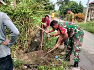 “Mari kita bersama-sama menjaga kebersihan parit dan badan jalan. Jangan membuang sampah sembarangan, karena jika parit tersumbat, air akan tergenang dan bisa menjadi sumber penyakit,” ujar Babinsa.