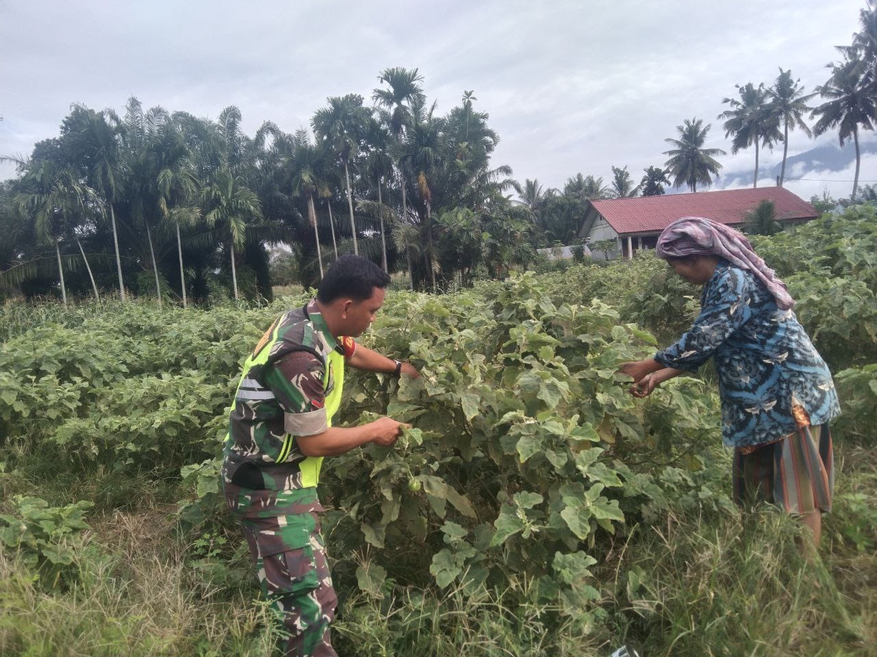 Kutacane Agaranews.com – Babinsa koramil 07/Semadam serda Tarmizi jajaran Kodim 0108/Agara melaksanakan giat membantu masyarakat menanam sayuran terong hijau milik ibu jamilah di desa semadam awal Kecamatan Semadam Kabupaten, Aceh Tenggara, Selasa (28/10/2025).
