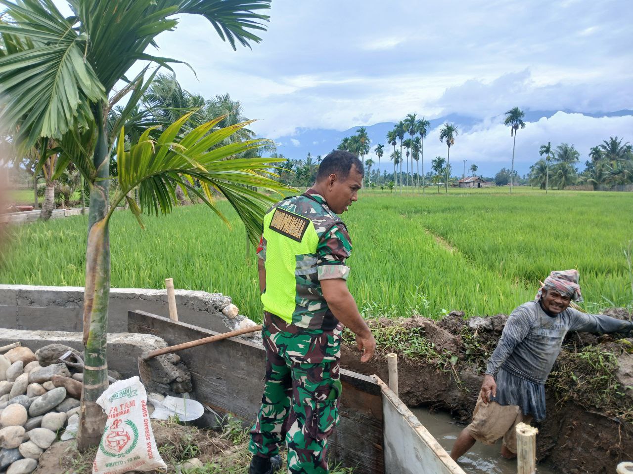 Kutacane Agaranews.com – Babinsa Koramil 0108-06/Babul Rahmah Serda Joni jajaran Kodim 0108/Agara membantu masyarakat membangun irigasi di desa khambung tubung kecamatan .babul Rahmah kabupaten.Aceh Tenggara .Selasa (28/10/2025)