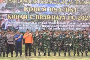 Tulungagung, AgaraNews .com // Latihan Penanggulangan Bencana Alam Tingkat Korem 081/DSJ TA 2025 resmi dimulai hari ini di Pantai Sidem Komplek, Kabupaten Tulungagung, Senin (27/10/2025).