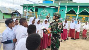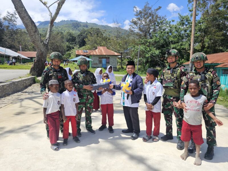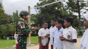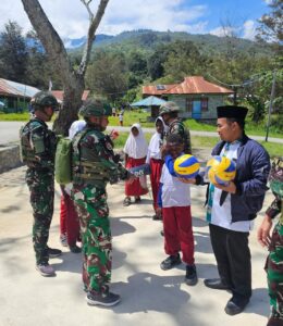 Satgas Yonif 521/DY Bagikan Net dan Bola Volly di Distrik Walesi, Jayawijaya, dalam Rangka Hari Sumpah Pemuda