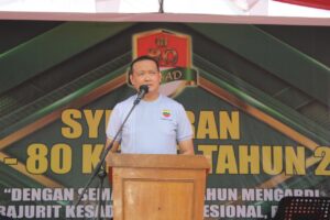 Dalam sambutannya, Kakesdam I/BB Kolonel Ckm dr. Mhd. Irsan Basyroel, Sp.KK.,M.H.,FINSDV.,FAADV menyampaikan apresiasi dan terima kasih kepada seluruh prajurit, tenaga kesehatan, dan keluarga besar Kesdam I/BB yang telah memberikan dedikasi serta pengabdian terbaik dalam pelayanan kesehatan bagi prajurit dan masyarakat. Momentum HUT ke-80 KESAD diharapkan menjadi motivasi untuk terus meningkatkan profesionalisme dan semangat pengabdian.