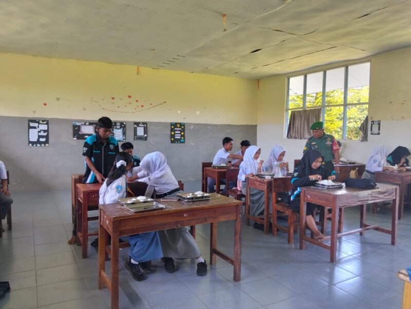 Babinsa Serma Aris mengungkapkan pendistribusian MBG dilakukan di berbagai sekolah dengan total penerima sebanyak : 3.484 porsi siswa.