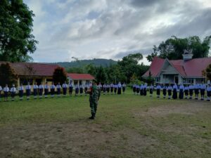 Pakpak Bharat, AgaraNews .com // Dalam upaya membentuk generasi muda yang berdisiplin, tangguh, dan berkarakter, Babinsa Koramil 07/Salak, Kodim 0206/Dairi, Sertu S. Boangmanalu melatih Peraturan Baris-Berbaris (PBB) kepada siswa-siswi kelas VIII SMP Negeri 1 Singgabur, Desa Silima Kuta, Kecamatan Sttu Julu, Kabupaten Pakpak Bharat, Rabu (29/10/2025).